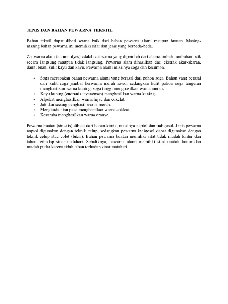 Jenis Dan Bahan Pewarna Tekstil Pdf